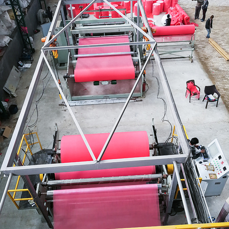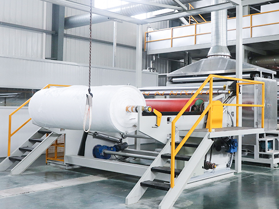 Maskinen PP spunbond nonwoven stoff brukes til å produsere pp spunbond nonwoven stoff. Med skjærer i maskinen vår kan stoffet kuttes i alle bredder for å passe til forskjellige krav. Maskinens kjørehastighet er 10-350m/min, filamentdenier:1,8-2,3denier