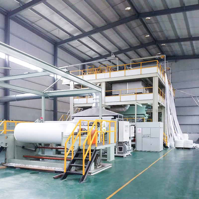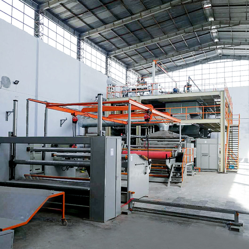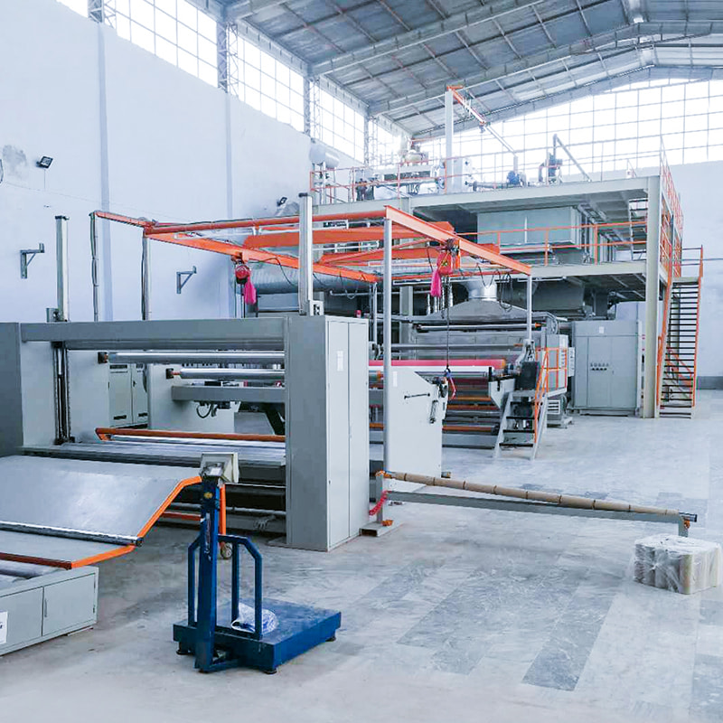 Maskinen PP spunbond nonwoven stoff brukes til å produsere pp spunbond nonwoven stoff. Med skjærer i maskinen vår kan stoffet kuttes i alle bredder for å passe til forskjellige krav. Maskinens kjørehastighet er 10-350m/min, filamentdenier:1,8-2,3denier