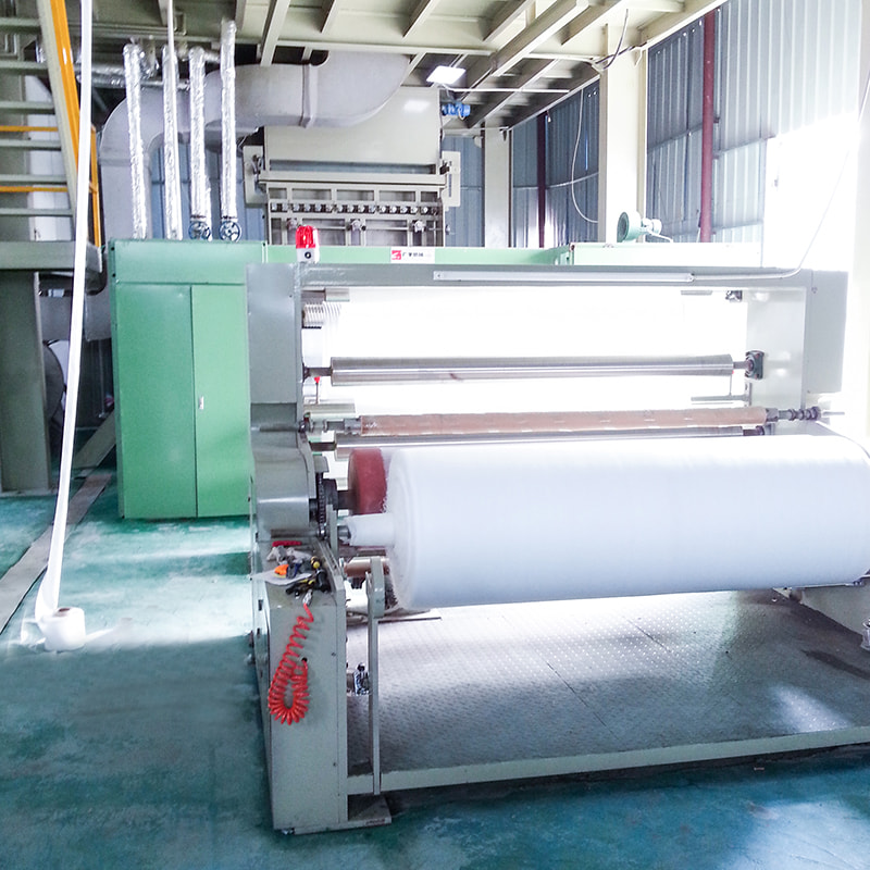 Maskinen PP spunbond nonwoven stoff brukes til å produsere pp spunbond nonwoven stoff. Med skjærer i maskinen vår kan stoffet kuttes i alle bredder for å passe til forskjellige krav. Maskinens kjørehastighet er 10-150m/min, filamentdenier:1,8-2,3denier