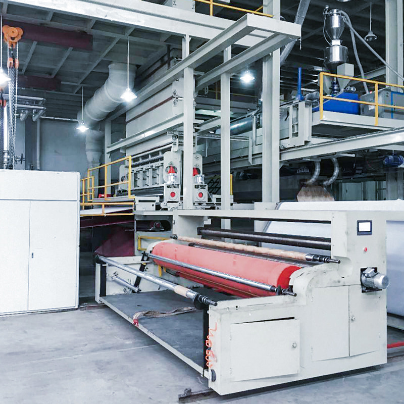 Maskinen PP spunbond nonwoven stoff brukes til å produsere pp spunbond nonwoven stoff. Med skjærer i maskinen vår kan stoffet kuttes i alle bredder for å passe til forskjellige krav. Maskinens kjørehastighet er 10-350m/min, filamentdenier:1,8-2,3denier